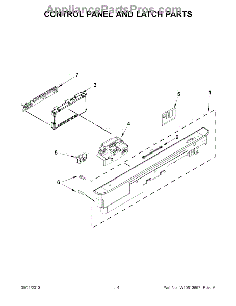 The Door Latch Assembly is an OEM part for Whirlpool dishwashers. It ensures a secure latch and seal for the dishwasher door during operation.