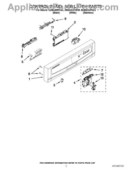 Parts for Maytag MDBS469PAB0: 02 - Control Panel And Latch Parts