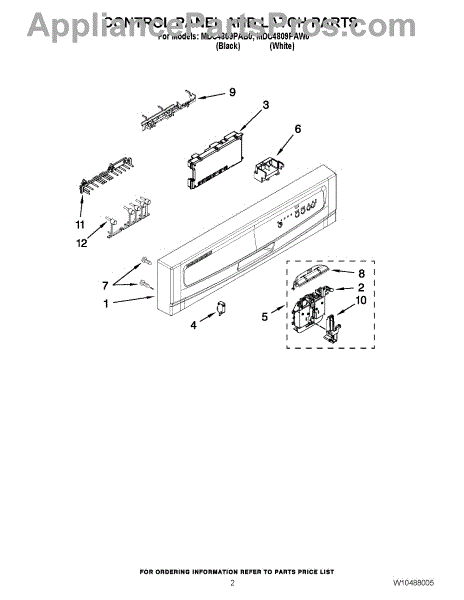This mounting bracket holds and aligns the door interlock switch(es) so the control can accurately detect when the door is closed. Replacing a cracked or warped bracket restores reliable door recognition and consistent operation.