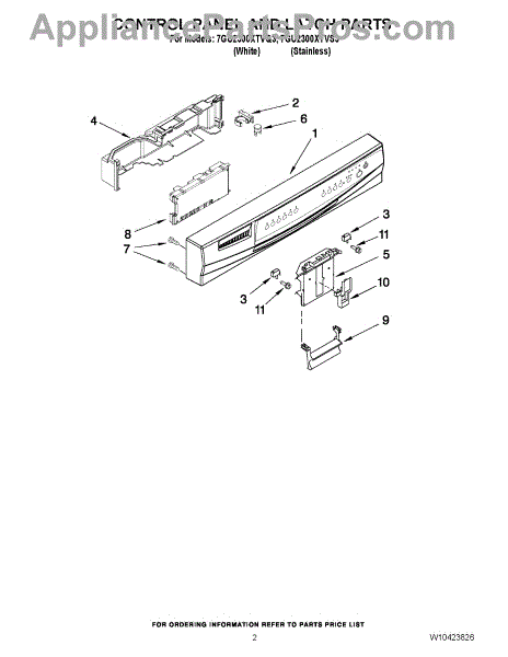 Parts for Whirlpool 7GU2300XTVQ3: 02 - Control Panel And Latch Parts