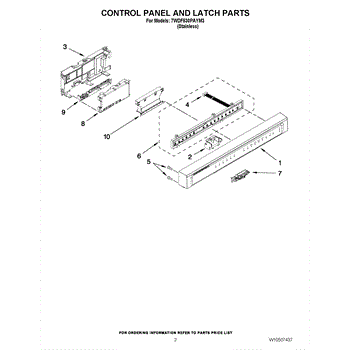 The Door Latch Assembly is an OEM part for Whirlpool dishwashers. It ensures a secure latch and seal for the dishwasher door during operation.