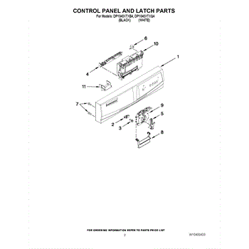 Parts for Whirlpool DP1040XTXB4: 02 - Control Panel And Latch Parts