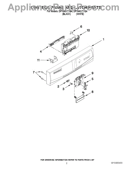 Parts for Whirlpool DP1040XTXQ4: 02 - Control Panel And Latch Parts