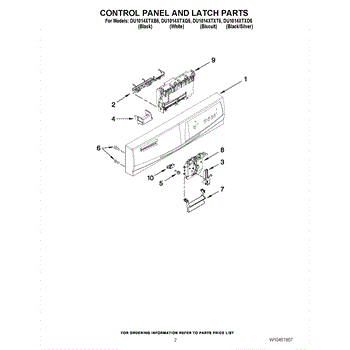 Parts for Whirlpool DU1014XTXT5: 02 - Control Panel And Latch Parts