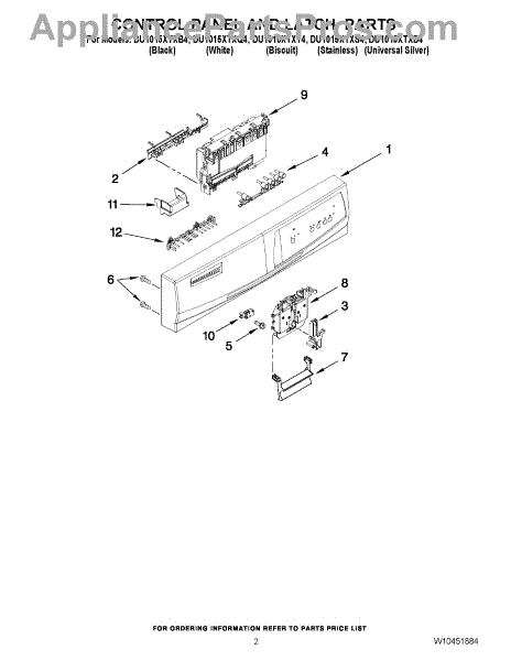 Parts for Whirlpool DU1015XTXD4: 02 - Control Panel And Latch Parts