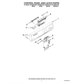 Parts for Whirlpool DU1030XTXB3: 02 - Control Panel And Latch Parts