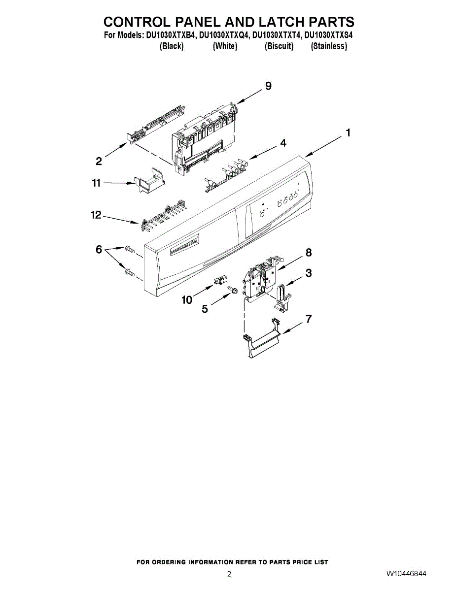 Parts for Whirlpool DU1030XTXQ4: 02 - Control Panel And Latch Parts