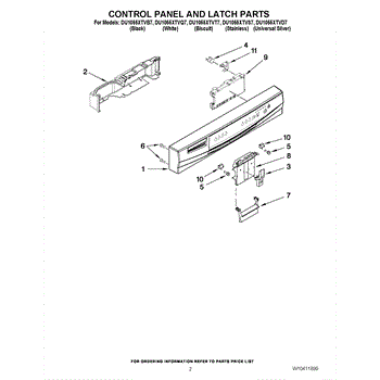 Parts for Whirlpool DU1055XTVB7: 02 - Control Panel And Latch Parts