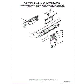 Parts for Whirlpool DU1055XTVBA: 02 - Control Panel And Latch Parts