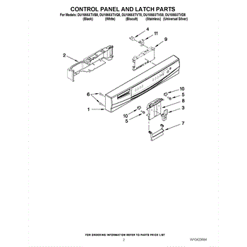 Parts for Whirlpool DU1055XTVT8: 02 - Control Panel And Latch Parts