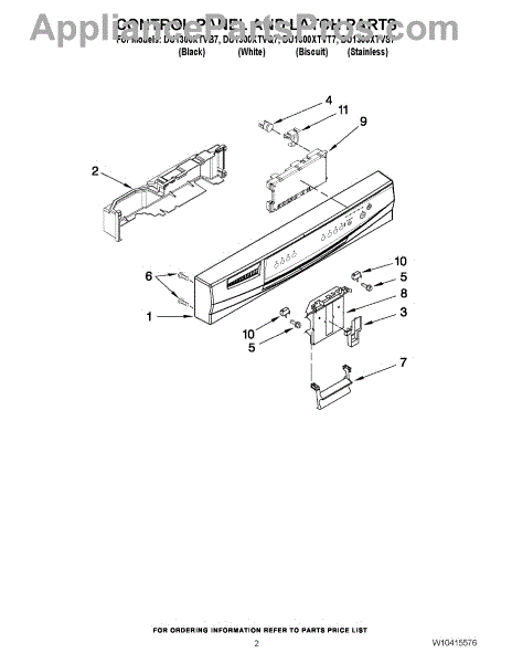 Parts for Whirlpool DU1300XTVT7: 02 - Control Panel And Latch Parts