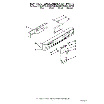 Parts for Whirlpool DU1300XTVT8: 02 - Control Panel And Latch Parts