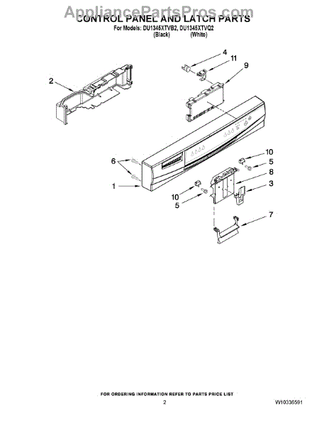 Parts for Whirlpool DU1345XTVB2: 02 - Control Panel And Latch Parts