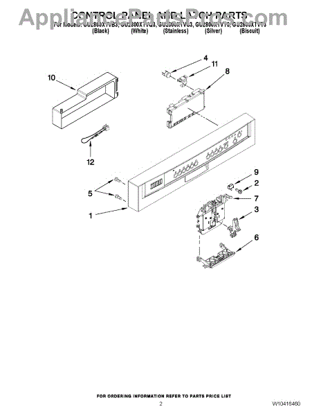 Parts for Whirlpool GU2800XTVB3: 02 - Control Panel And Latch Parts