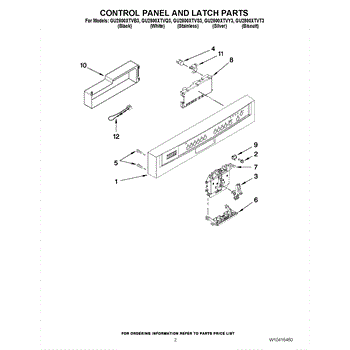 Parts for Whirlpool GU2800XTVQ3: 02 - Control Panel And Latch Parts