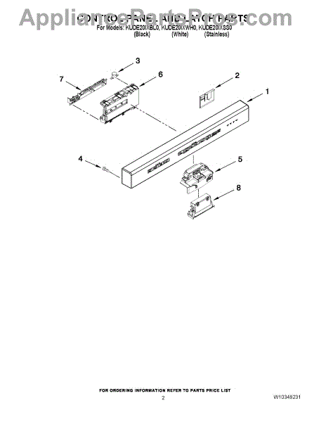 Parts for Kitchenaid KUDE20IXWH0: 02 - Control Panel And Latch Parts