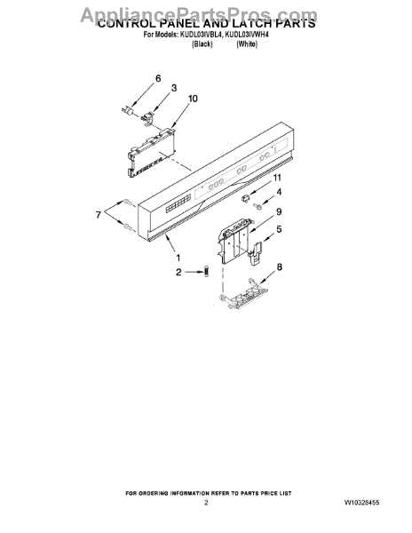The OEM Electronic Control Board is an OEM replacement part for Whirlpool dishwashers. It is a circuit board that controls all of the functions of the dishwasher, including the wash cycles, water temperature, and detergent dispensing. Causes of failure involve damage from liquid intrusion shortening circuits or component deterioration over extended use reducing precision. Symptoms include: