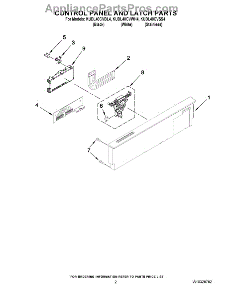 Parts for Kitchenaid KUDL40CVWH4: 02 - Control Panel And Latch Parts