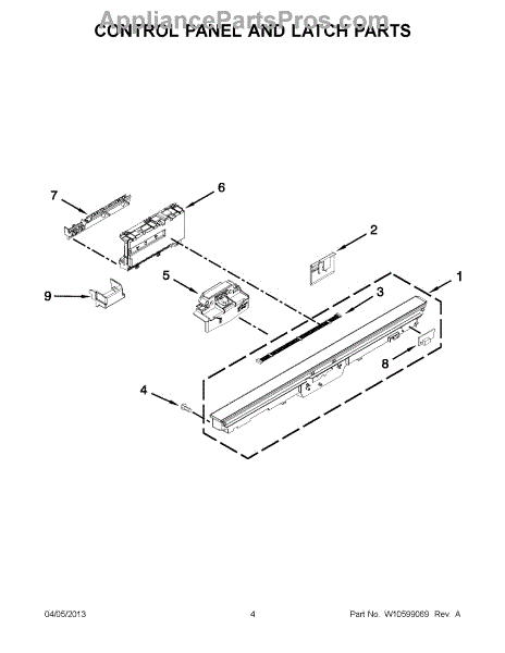 Parts for Kitchenaid KUDS30FXWH9: 02 - Control Panel And Latch Parts