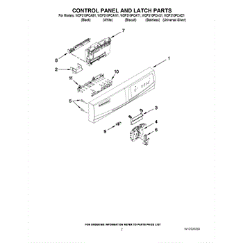 Parts for Whirlpool WDF310PCAT1: 02 - Control Panel And Latch Parts