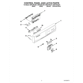 Parts for Whirlpool WDF310PLAB1: 02 - Control Panel And Latch Parts