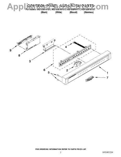 Parts for Whirlpool WDF530PAYM1: 02 - Control Panel And Latch Parts