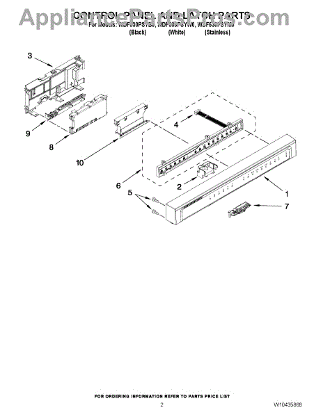 This console assembly replaces the dishwasher's front control panel to restore responsive controls and a clean finished appearance. It houses the user buttons and display components used to select cycles and options. What it does: