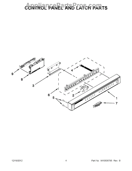 This console assembly replaces the dishwasher's front control panel to restore responsive controls and a clean finished appearance. It houses the user buttons and display components used to select cycles and options. What it does: