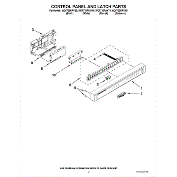 Parts for Whirlpool WDF730PAYM0: 02 - Control Panel And Latch Parts