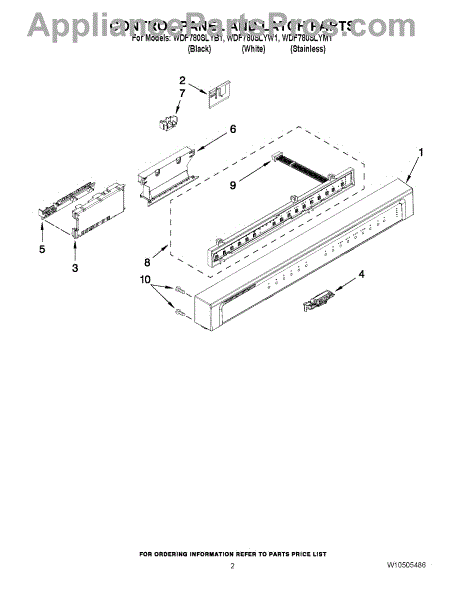 Parts for Whirlpool WDF780SLYW1: 02 - Control Panel And Latch Parts