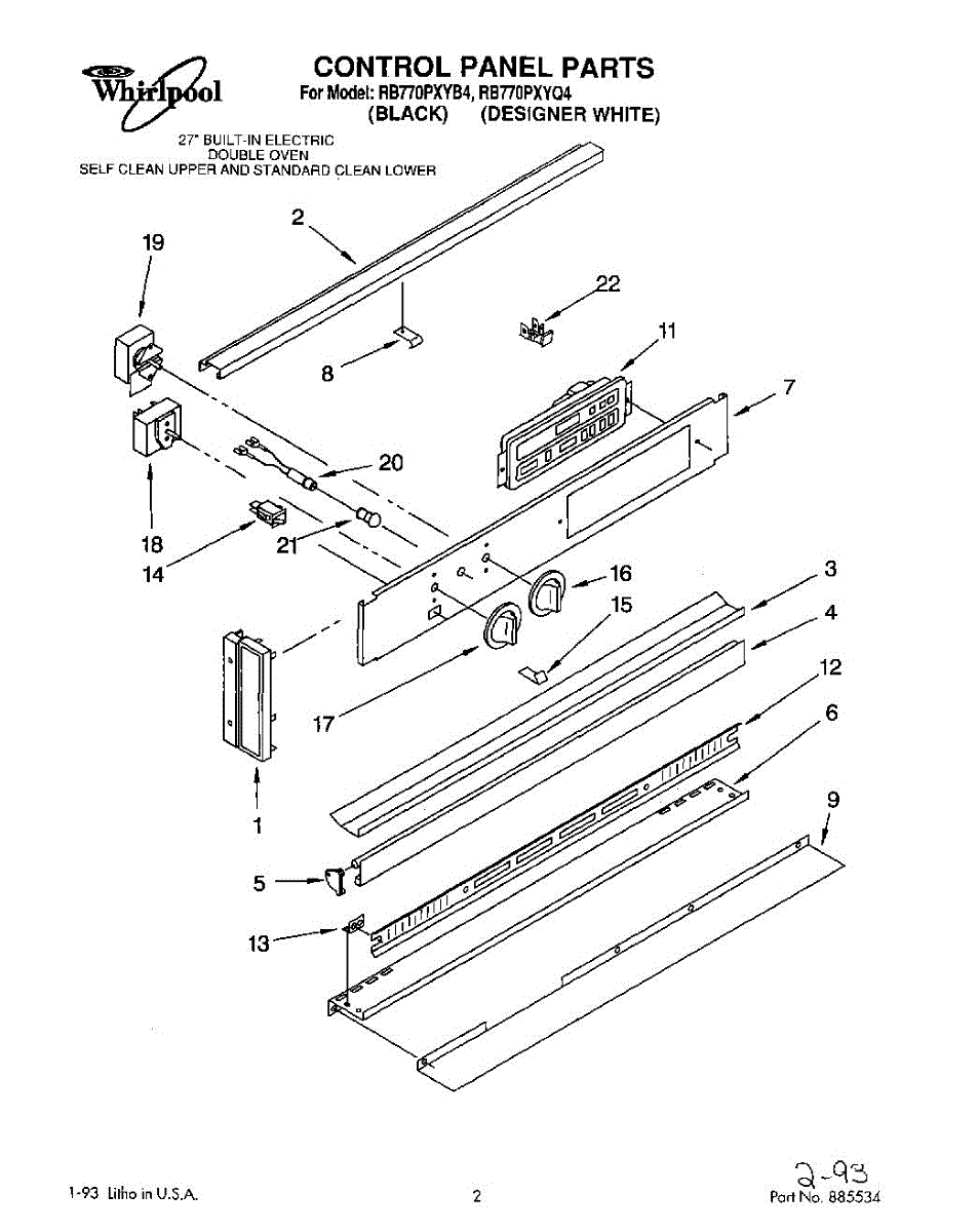 Parts for Whirlpool RB770PXYQ4: 01 - Control Panel, Lit / Optional Parts