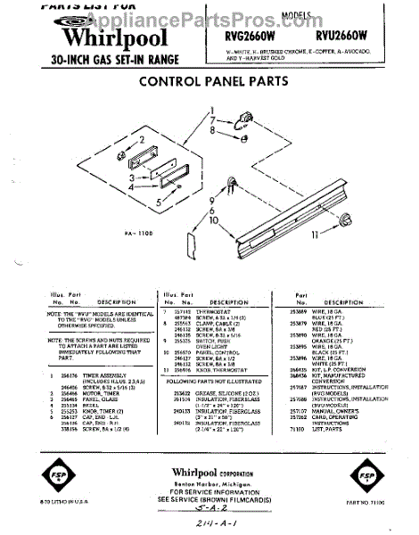 Parts for Whirlpool RVG2660W: 01 - Control Panel , Lit / Optional Parts