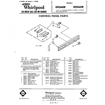 Parts for Whirlpool RVU2660W: 01 - Control Panel , Lit / Optional Parts