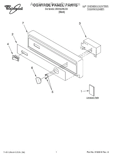 Parts for Whirlpool DU018DWJX0: 01 - Control Panel, Literature Parts