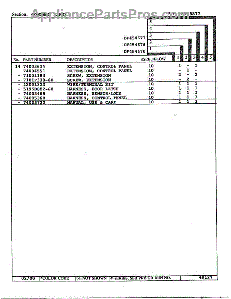 This factory screw secures appliance components to their mounting points. Replace missing, worn, or stripped hardware to restore a tight fit, proper alignment, and quieter operation across the affected assembly.