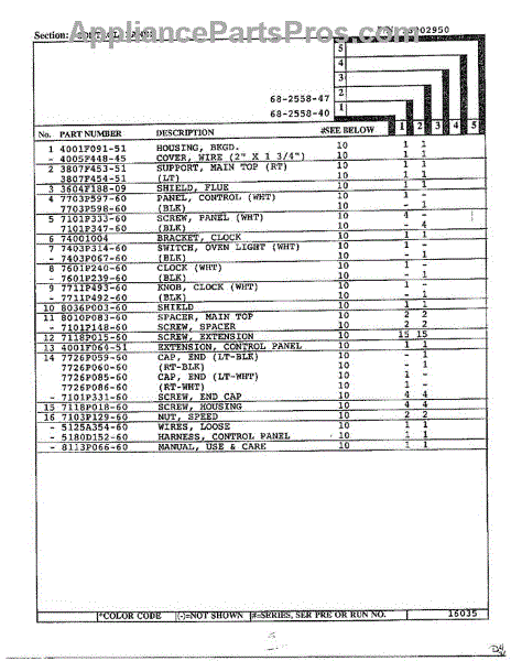 Parts for Magic Chef 68-2558-40: Control Panel Page 2 Parts