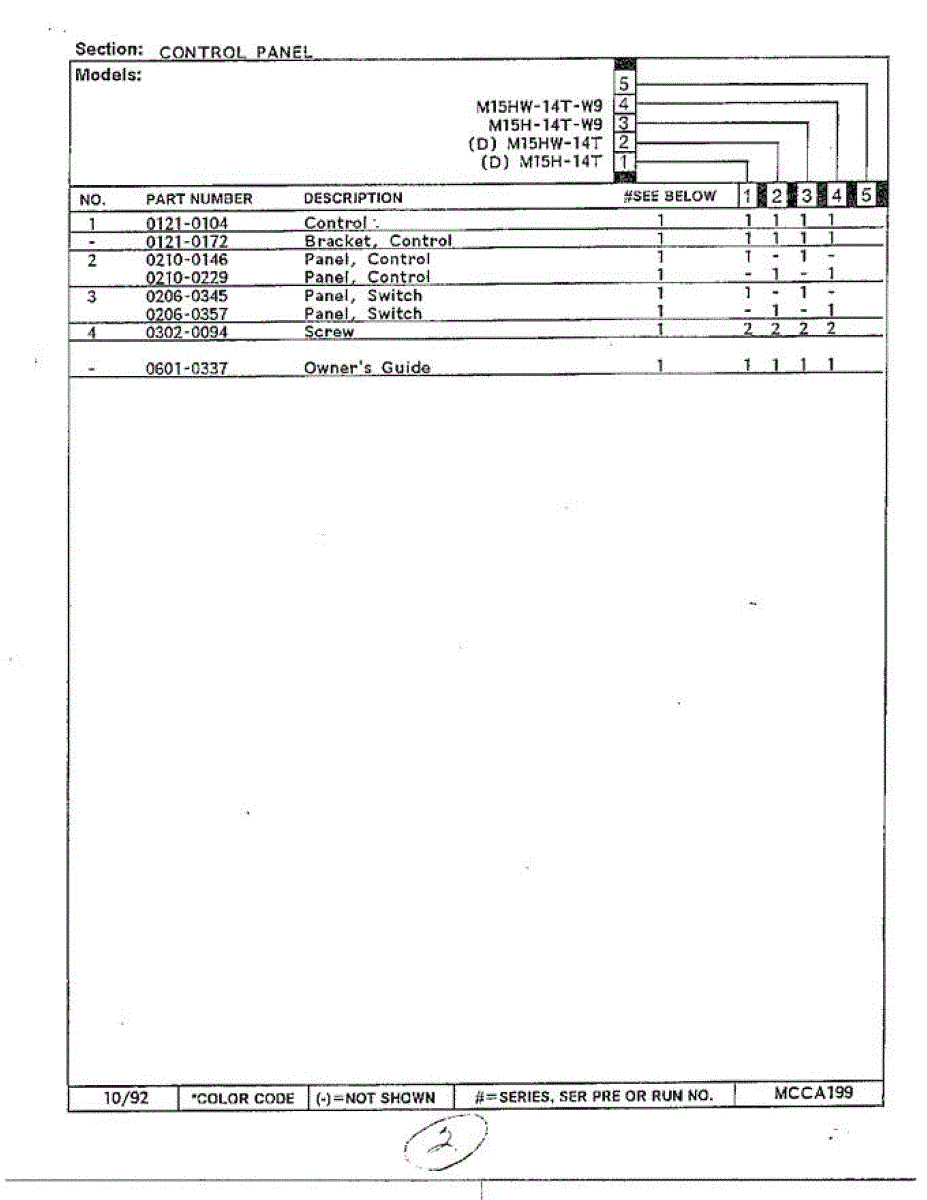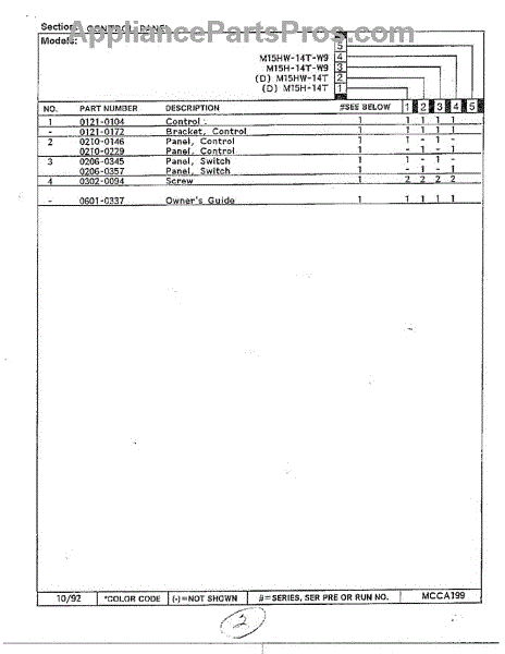 Parts for Magic Chef 9850: Control Panel Page 2 Parts