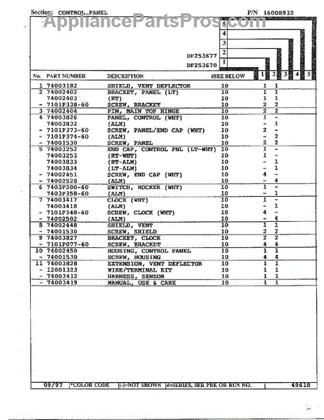 This factory screw secures appliance components to their mounting points. Replace missing, worn, or stripped hardware to restore a tight fit, proper alignment, and quieter operation across the affected assembly.