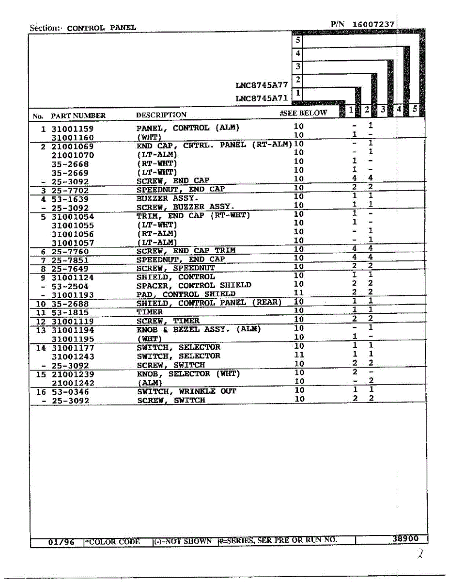Parts for Maytag LNC-8745A71: Control Panel Page 2 Parts