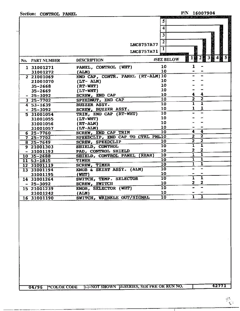 Parts for Maytag LNC-8757A77: Control Panel Page 2 Parts