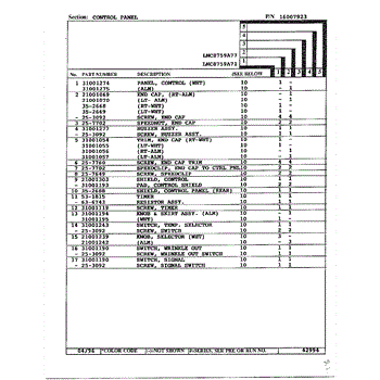 Parts for Maytag LNC-8759A71: Control Panel Page 2 Parts