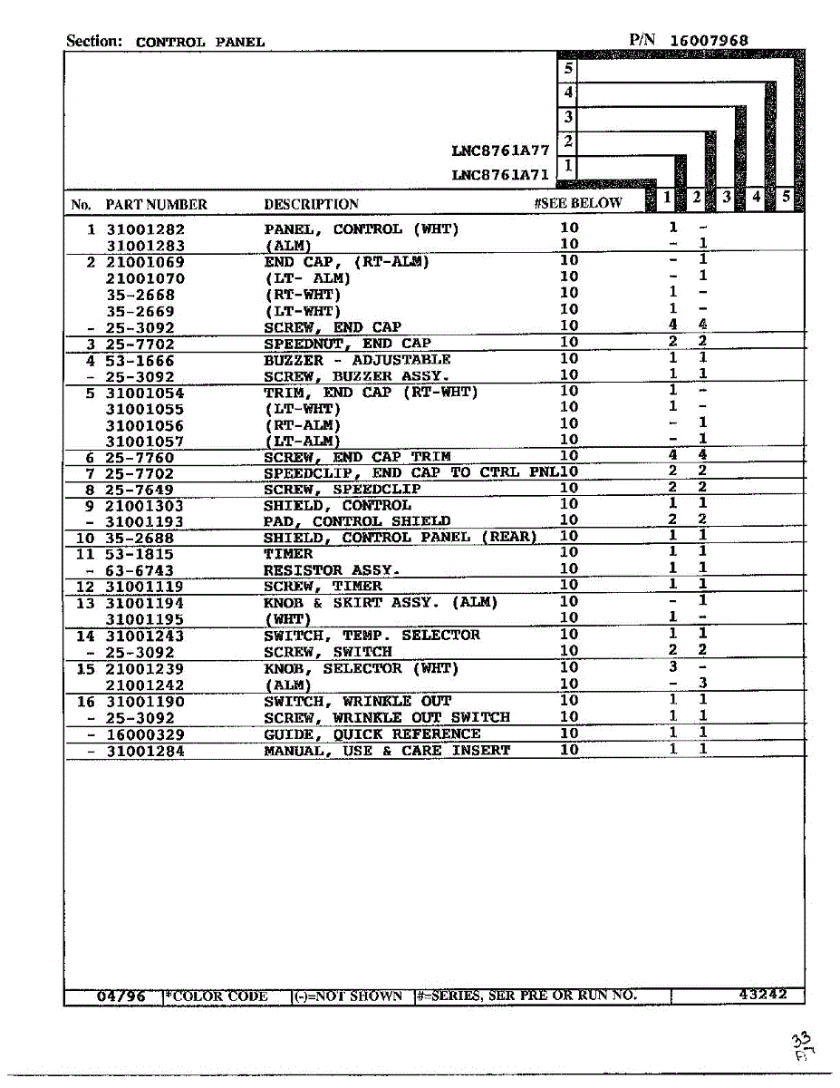 Parts for Maytag LNC-8761A71: Control Panel Page 2 Parts
