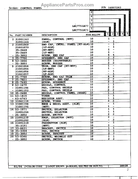 Parts for Maytag LNC7751A71: Control Panel Page 2 Parts