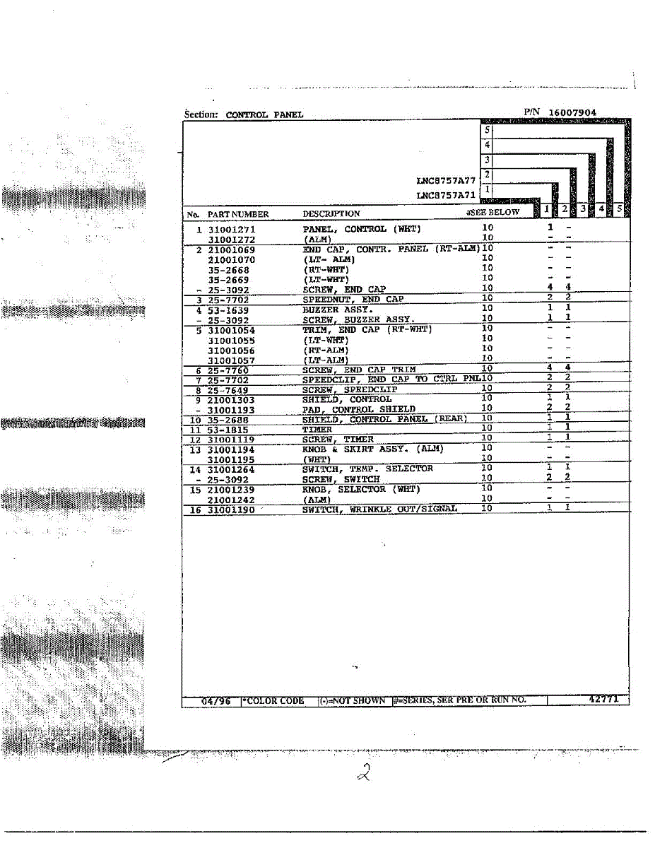 Parts for Maytag LNC7753A71: Control Panel Page 2 Parts