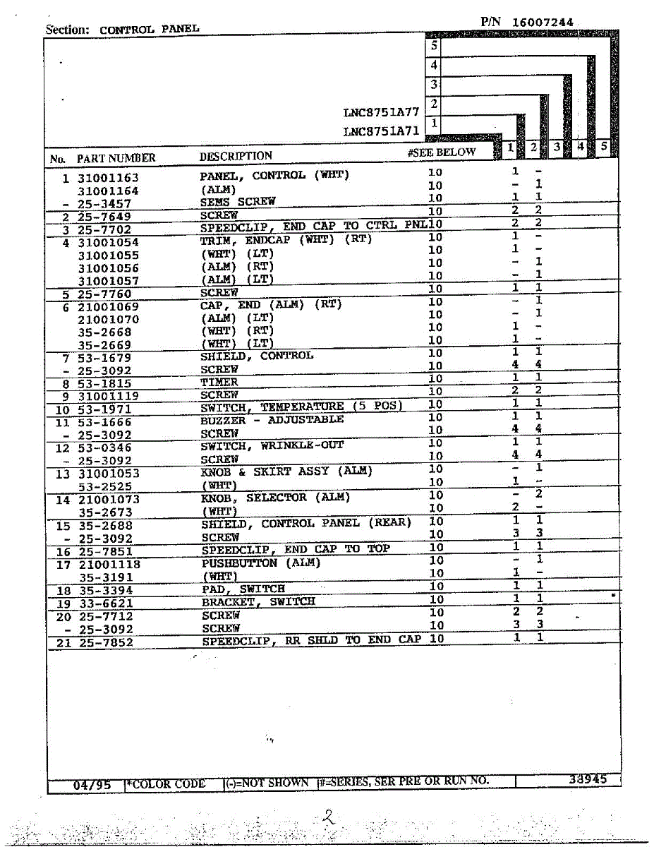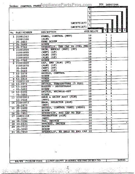 Parts for Maytag LNC8751A71: Control Panel Page 2 Parts