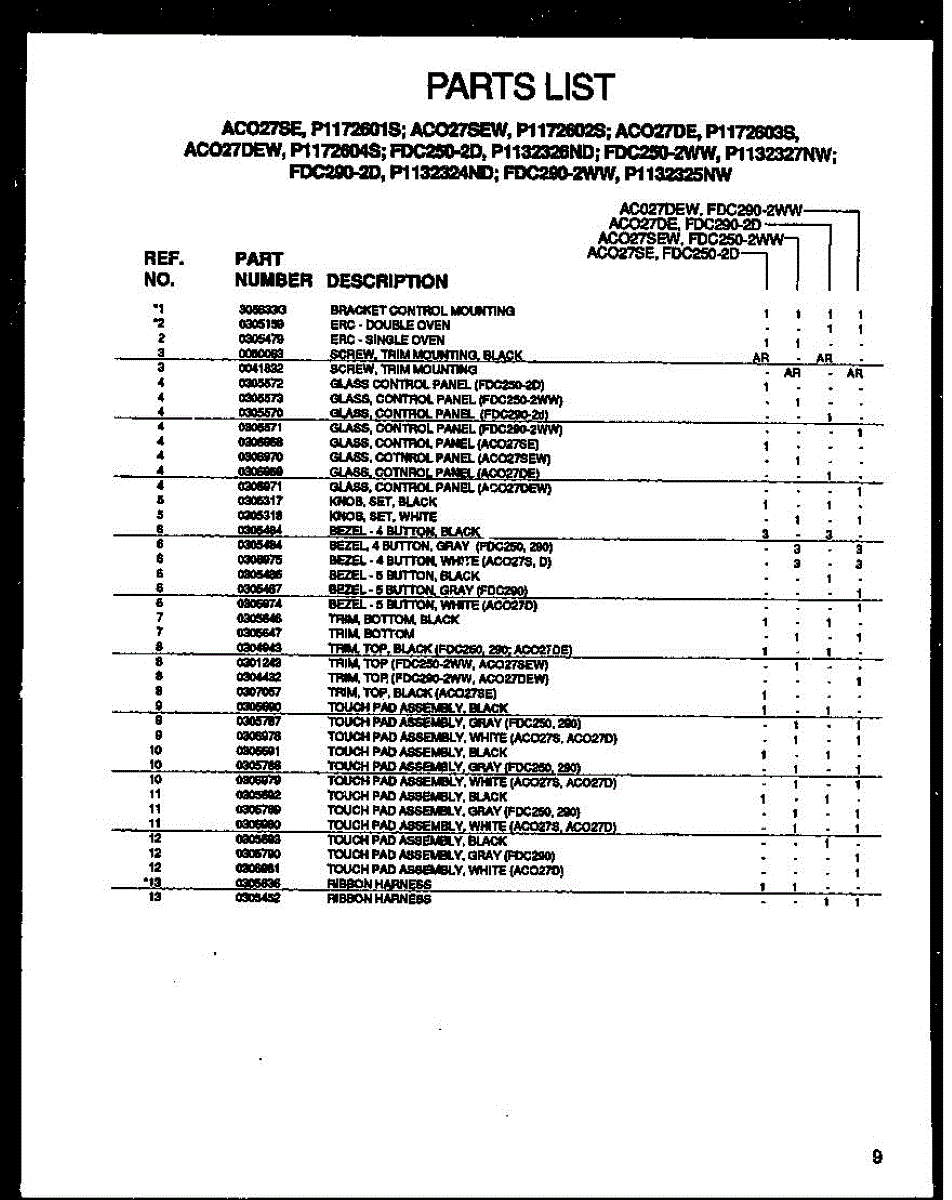 Parts for Amana AC027SE-P1172601S: Control Panel Parts