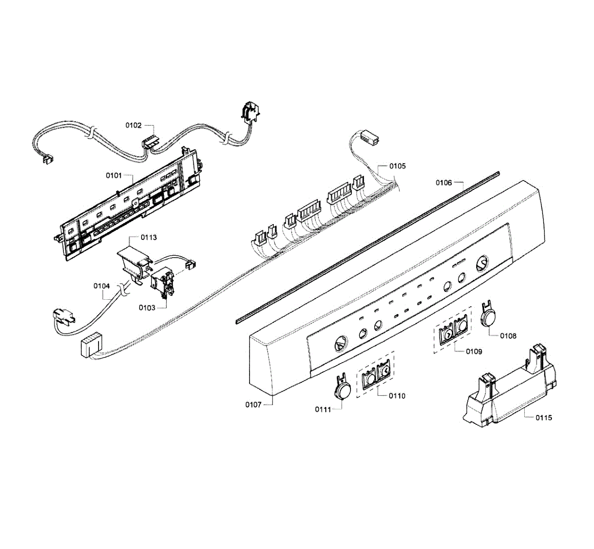 Replacement control panel facia for Bosch dishwashers. Covers control interfaces and buttons. Needed when cracked, chipped, or letters worn off from use.