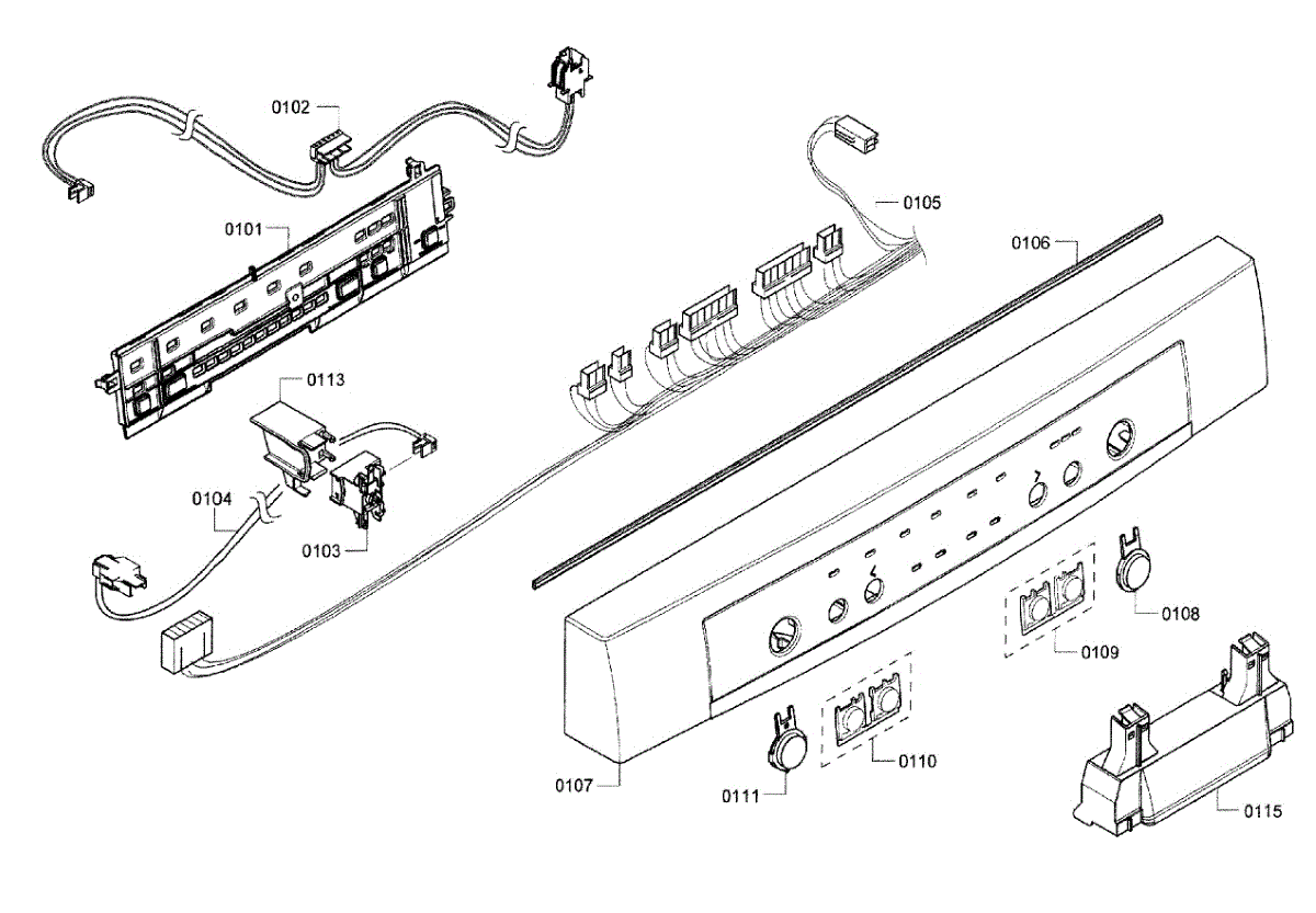 Replacement control panel facia for Bosch dishwashers. Covers control interfaces and buttons. Needed when cracked, chipped, or letters worn off from use.