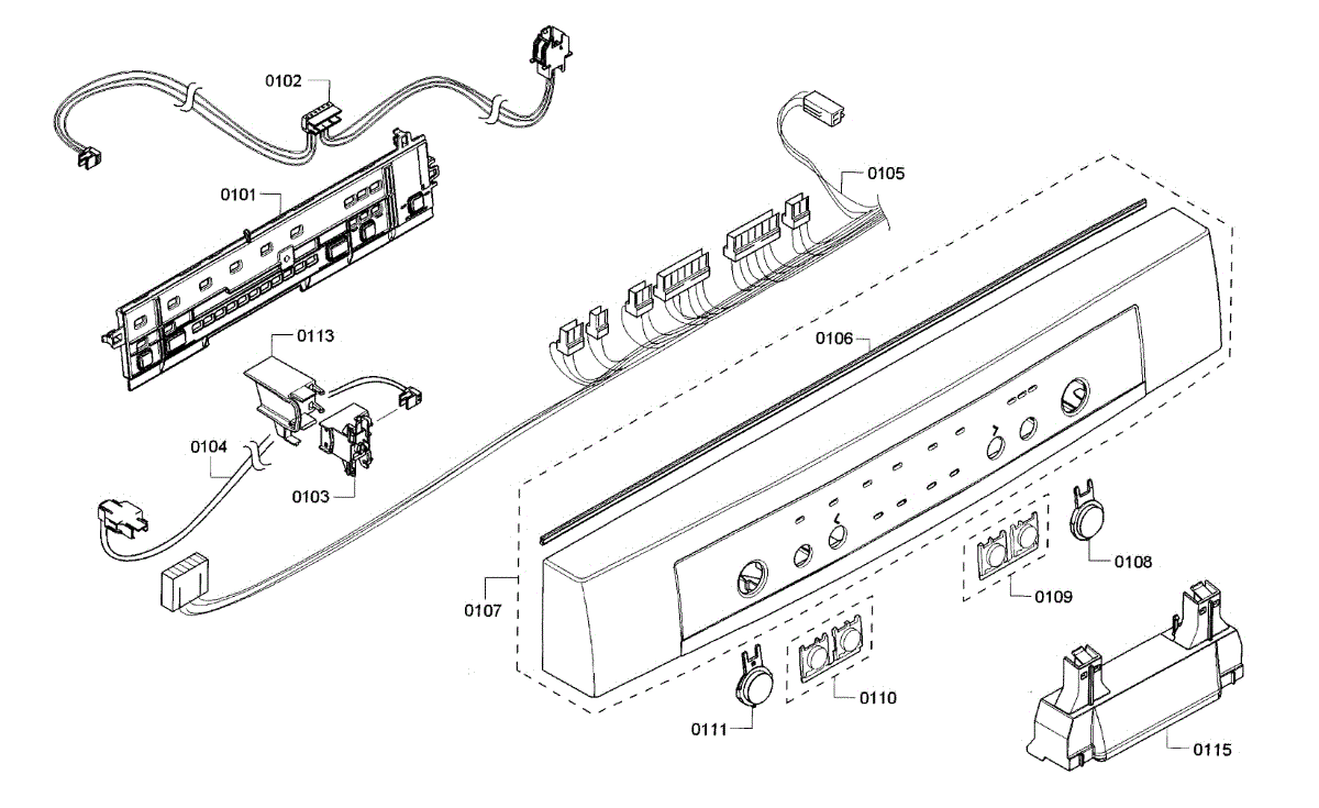 Replacement control panel facia for Bosch dishwashers. Covers control interfaces and buttons. Needed when cracked, chipped, or letters worn off from use.