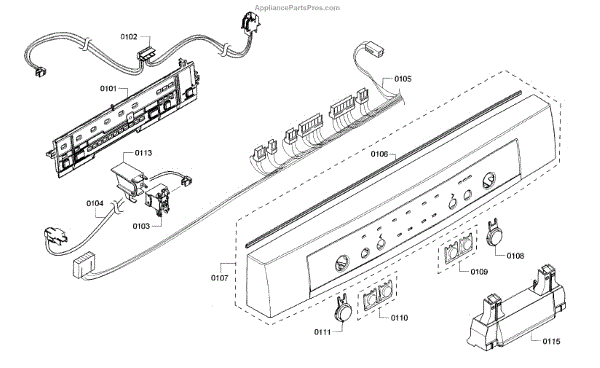 The Control Unit is an OEM part for Bosch dishwasher models. It incorporates the electronic circuits and microprocessors that govern cycles, temperatures, diagnostic tools and more. Causes of a bad control unit can include water damage, power surges affecting sensitive chips, or simply wear over time reducing performance. Symptoms of a defective control board include: